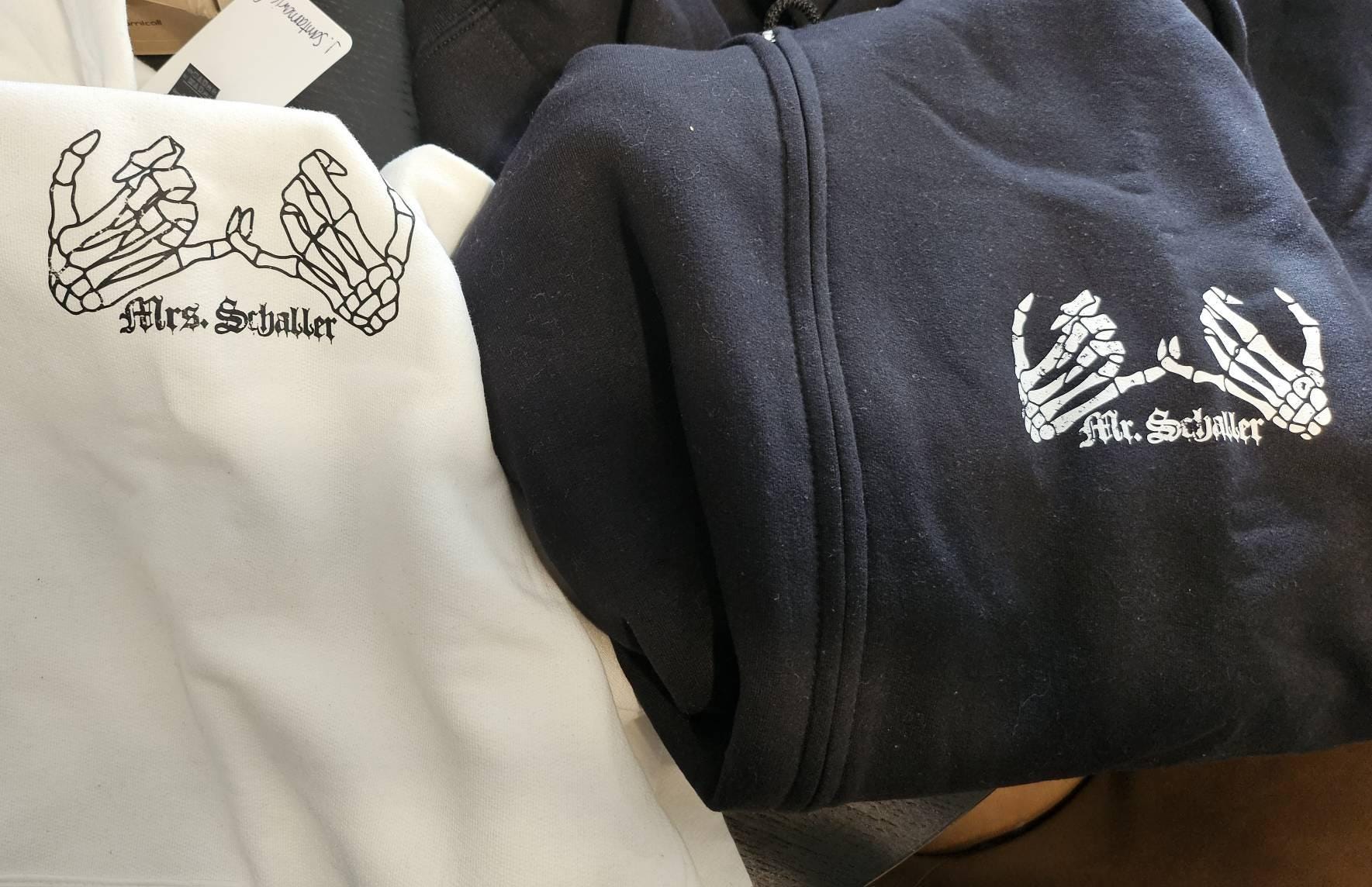 Embrace your inner goth and flaunt your unique bond with our skeleton design that scream "couple goals." From the mischievous spirits to the bone-chilling phrase "Eternally Yours", these hoodies are the perfect fusion of spooky and sweet. So, whether you're strolling hand in bony hand at the pumpkin patch or enjoying a candlelit dinner in a haunted house, our matching sweatshirts will keep you in sync and in style!