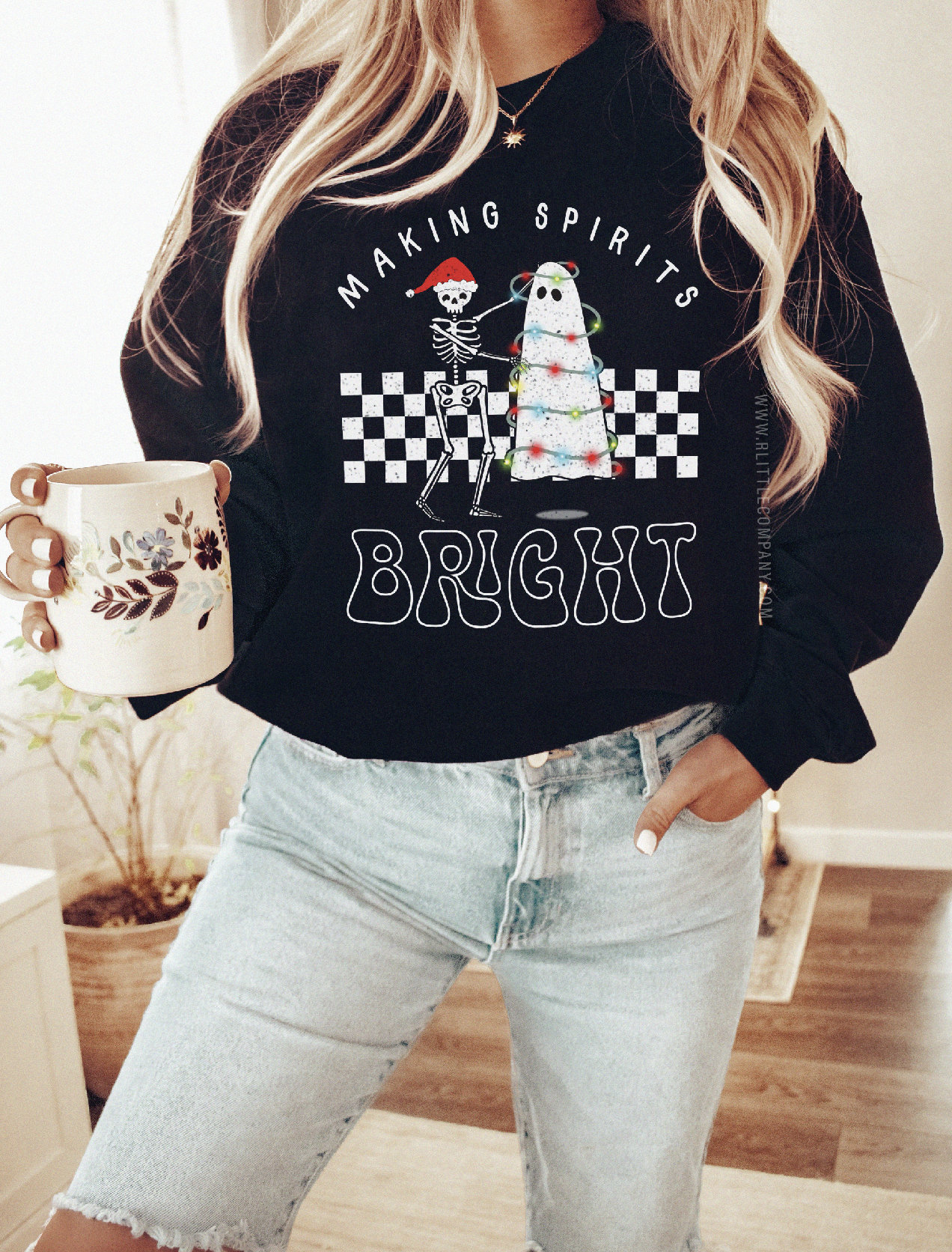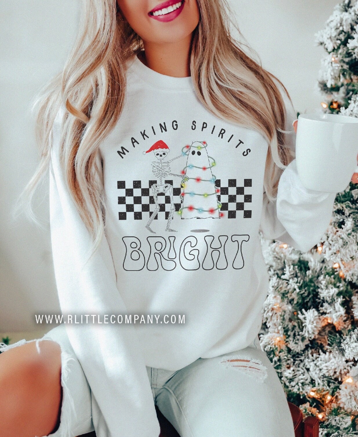 Make spirits bright this year with this funny skeleton ghost christmas cozy crewneck! It's an easy way to bring both trendy holiday apparel and humor to you holiday party or get-togethers. It also makes a great gift for your loved ones as our DTG printing process keeps the shirts looking bright and new throughout their wear. Whether you're more on the gothic side and extending the spooky season, or just want to create a laugh, a graphic sweatshirt is the best way to do it!