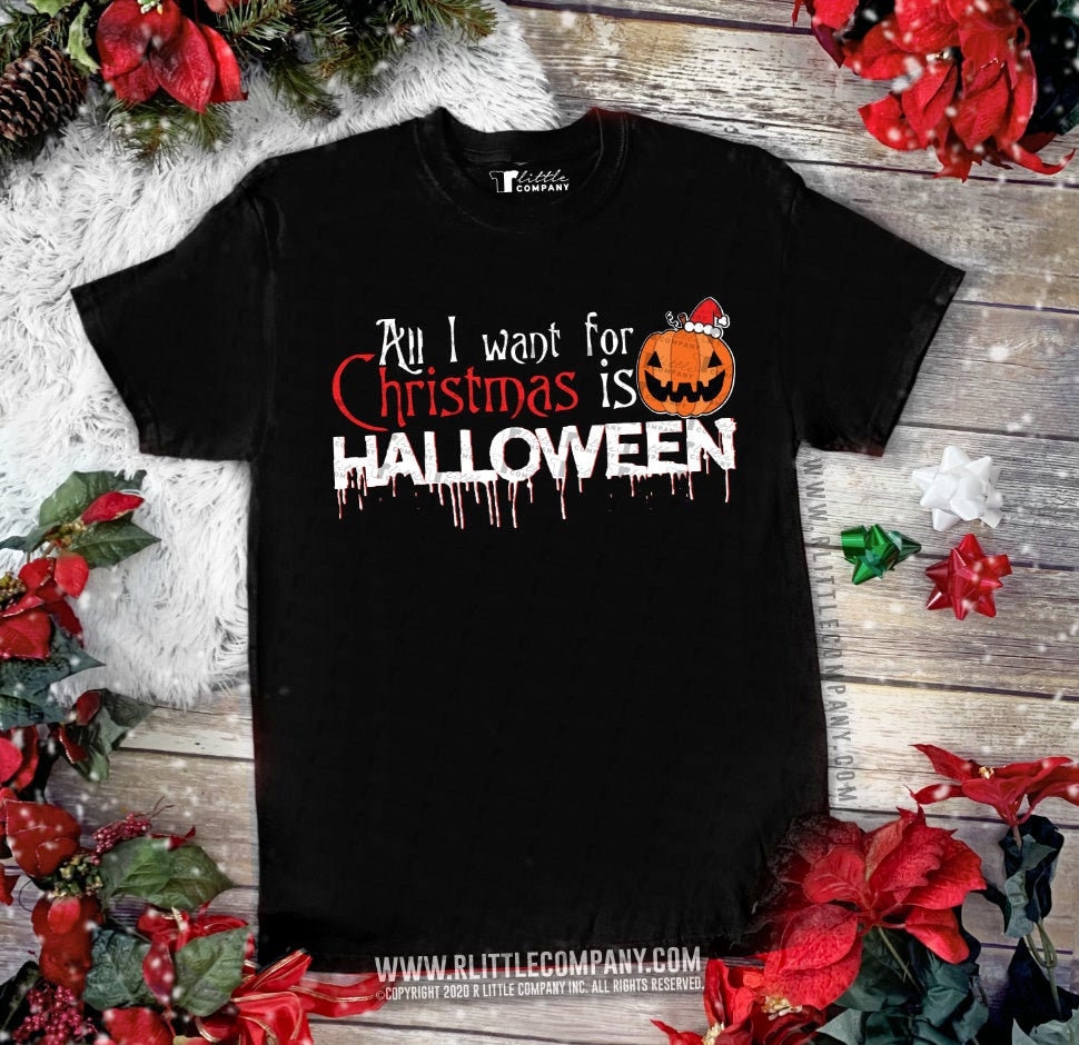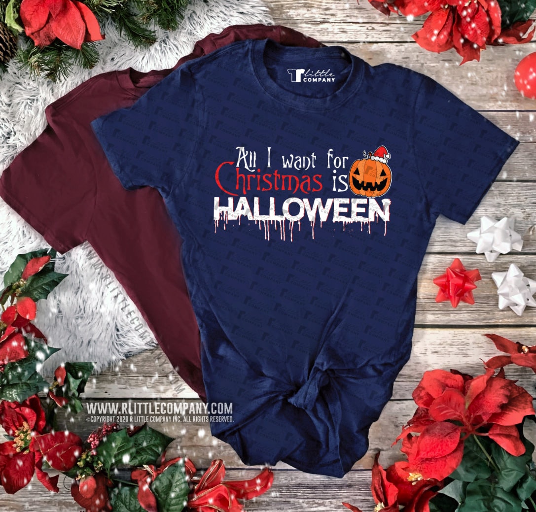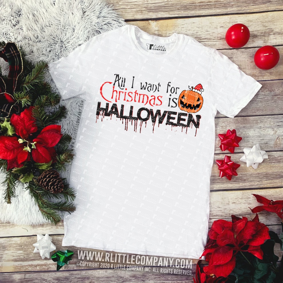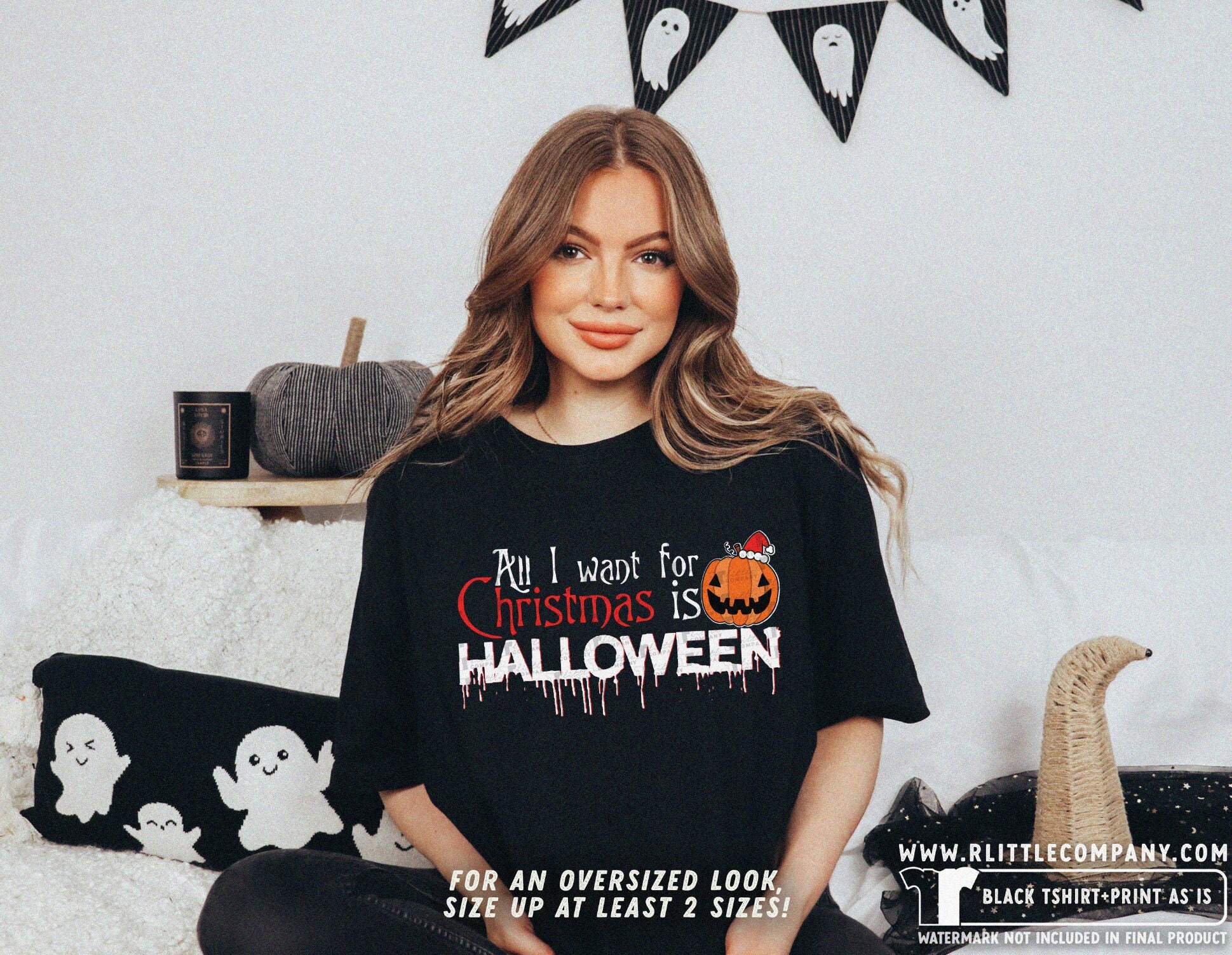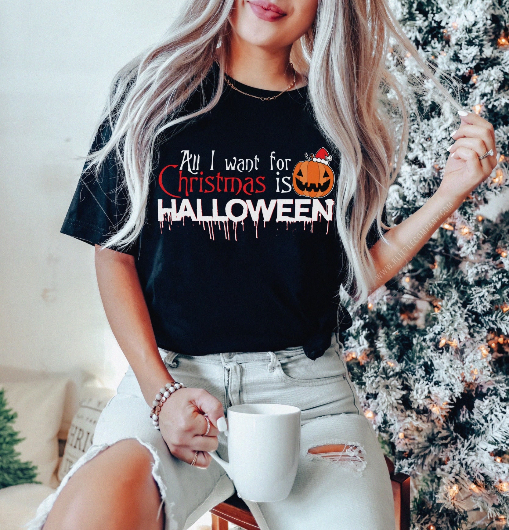 🦇🎄 Unleash your inner dark and festive spirit with our "All I Want for Christmas is Halloween" T-shirt! 🎄🦇