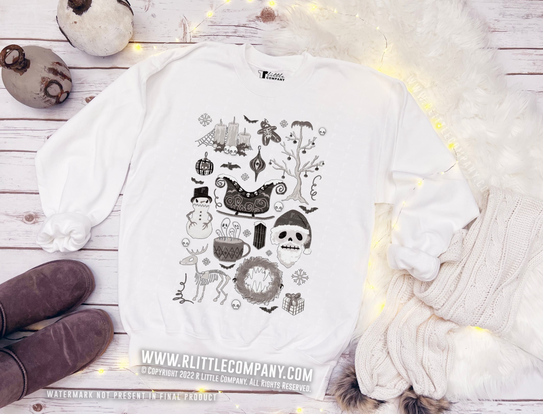 Merry Creepmas! Let your love for spooky season creep over into your holiday apparel this christmas time. With this creepy collage on a unisex sweatshirt, you'll be the talk of the holiday party as you'll be sure to stand out from all of the other ugly christmas holiday sweaters. It makes a great gift for yourself or a gift for others as our DTG process creates a vivid print in the shirt to last throughout the gothic christmas season you so desire! Bring your love for Halloween into your holiday apparel this season.
